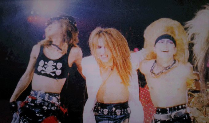 そして、Yoshikiが当時解散したばかりのサーベルタイガーのリーダーHideをXに誘い、Hideが加入。「元気が出るテレビ」で”やしろ食堂ライブ”を行う。TOSHIのアピールがすさまじい。 ( ´艸`)